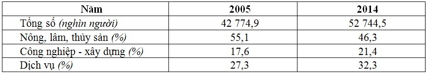 Cho bảng số liệu sau: Quy mô và cơ cấu lao động đang làm việc ở nước ta năm 2005 và