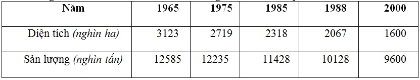 Cho bảng số liệu sau: Tình hình sản xuất lúa gạo ở Nhật Bản qua các năm Nhận xét nào sau