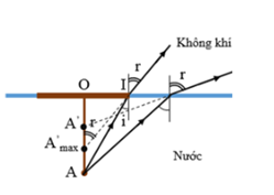 Một miếng gỗ hình tròn, bán kính 4 (cm). Ở tâm O, cắm thẳng góc một đinh OA. Thả miếng gỗ nổi trong một chậu nước có chiết suất n = 1,33. Đinh OA ở trong nước, cho OA = 6 (cm). Mắt đặt trong không khí sẽ thấy đầu A cách mặt nước một khoảng lớn nhất là: