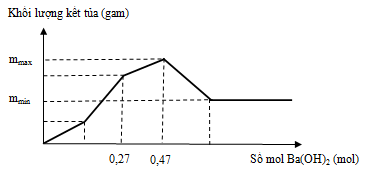 Nhỏ từ từ dung dịch Ba(OH)2 vào ống nghiệm chứa dung dịch HCl và Al2(SO4)3. Đồ thị biểu diễn