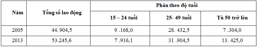LỰC LƯỢNG LAO ĐỘNG PHÂN THEO NHÓM TUỔI TỪ 15 TUỔI TRỞ LÊN CỦA NƯỚC TA 2005 VÀ 2013