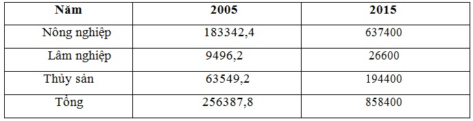 Cho bảng số liệu: Giá trị sản xuất nông, lâm và thủy sản của nước ta (theo giá thực