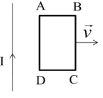 Một khung dây hình chữ nhật ABCD chuyển động theo phương vuông góc với dòng điện thẳng dài