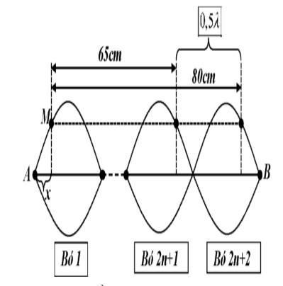 Biên độ sóng tại điểm cách nút sóng gần nhất một đoạn x là \(A=\left| {{A}_{n}}\sin \frac{2\pi x}{\lambda } \right|\)