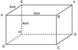 2. Tính thể tích hình hộp chữ nhật ABCD.EFGH biết cạnh \(AE = 5cm,{\rm{ }}EH = 4cm;{\rm{ }}AB = 3cm.\)