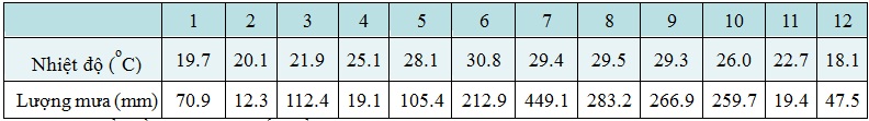 Cho bảng số liệu: Biểu đồ thích hợp nhất thể hiện nhiệt độ, lượng mưa các tháng năm