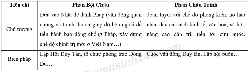 So sánh hai xu hướng cứu nước: bạo động của Phan Bội Châu và cải cách của Phan Châu Trinh (về chủ trương và biện pháp).