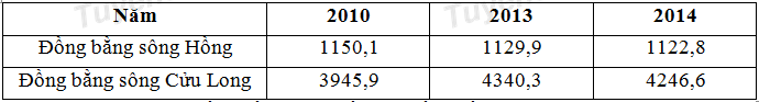 Để thể hiện diện tích lúa của Đồng bằng sông Hồng và đồng bằng sông Cửu Long giai đoạn 2010 – 2014 theo số liệu trên, thích hợp nhất là biểu đồ