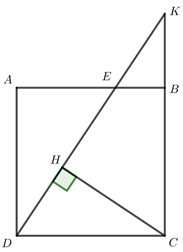 Cho hình vuông ABCD. Trên cạnh AB lấy điểm E sao cho \(BE = \frac{1}{3}AB\). Đường thẳng DE cắt CB kéo dài tại K.
