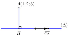 Cho \(A\left( {1;2;3} \right),\,\,\left( \Delta \right):\,\,\dfrac{{x - 2}}{2} = \dfrac{{y + 2}}{{ - 1}} = \dfrac{{z - 3}}{1}\). Tìm \(H\) là hình chiếu vuông góc của \(A\) lên \(\left( \Delta \right)\).