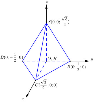 Chóp \(S.ABC\) có \(\left( {SAB} \right) \bot \left( {ABC} \right).\,\,\Delta SAB\) đều, \(\Delta ABC\) đều có \(AB = a\). Tính \(d\left( {SA;BC} \right)\).