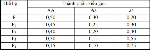 Một quần thể sinh vật ngẫu phối đang chịu tác động của chọn lọc tự nhiên có cấu trúc di truyền ở các thế hệ như sau: