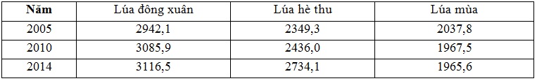 Cho bảng số liệu: DIỆN TÍCH LÚA THEO MÙA VỤ Ở NƯỚC TA THEO CÁC NĂM ( Đơn vị: nghìn ha) (