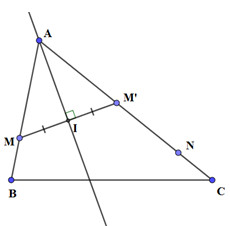 Xác định tọa độ điểm \(M'\) là điểm đối xứng của M qua đường phân giác góc A. Khi đó, \(M \in AC \Rightarrow AC\) nhận \(\overrightarrow {M'N} \) là 1 VTCP.