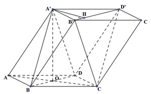 Cho lăng trụ ABCD.A’B’C’D’ có đáy ABCD là hình chữ nhật. \(AB = a,AD = a\sqrt 3 \). Hình chiếu