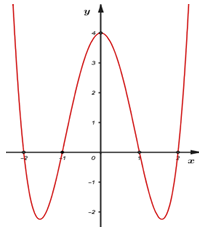 Cho \(f(x) = {x^4} - 5{x^2} + 4\) . Gọi \(S\) là diện tích của hình phẳng giới hạn bởi đồ thị hàm số \(y = f\left( x \right)\) và trục hoành. Mệnh đề nào sau đây sai?