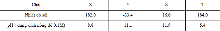 Cho X, Y,Z,T là bốn chất khác nhau trong các chất sau C6H5NH2, C6H5OH, NH3, C2H5NH2 và có các tính chất ghi trong bảng sau: