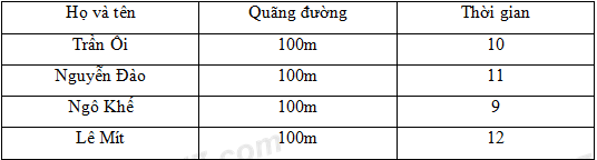Dựa vào bảng bên, hãy cho biết người chạy nhanh nhất