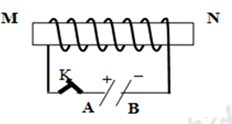 Ống dây MN có lõi sắt, có dòng điện chạy qua (hình dưới). Phát biểu nào sau đây là
