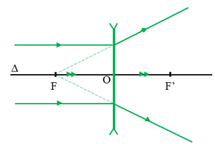 Tia tới song song với trục chính của thấu kính phân kì cho tia ló có đặc điểm sau: