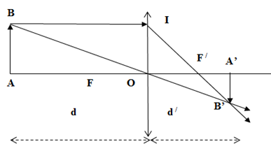 a) Vẽ ảnh của vật AB qua thấu kính đó (vẽ theo tỉ lệ tùy ý ). Nêu tính chất của ảnh.