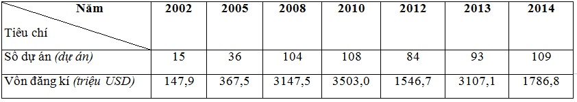Cho bảng số liệu: ĐẦU TƯ TRỰC TIẾP RA NƯỚC NGOÀI CỦA VIỆT NAM ĐƯỢC CẤP PHÉP, GIAI ĐOẠN