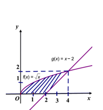 Cho hình phẳng (H) (phần gạch chép trong hình vẽ). Tính thể tích V của khối tròn xoay tạo thành khi quay hình (H) quanh trục hoành