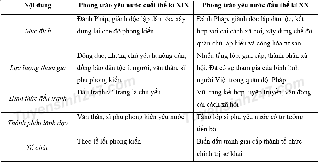Một trong những điểm tương đồng của phong trào yêu nước đầu thế kỉ XX với các phong trào