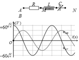 Đặt một điện áp xoat chiều \(u = U\sqrt 2 \cos \left( {\omega t} \right)\) (U và ω > 0, không đổi) vào hai đầu đoạn mạch AB. Khi đó công suất tiêu thụ trên đoạn mạch AM bằng công suất tiêu thụ trên đoạn MB. Sự phụ thuộc của điện áp tức thời hai đầu đoạn mạch AN và MB theo thời gian được cho như đồ thị hình vẽ. Giá trị U gần nhất với đáp án nào sau đây?