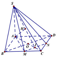 Cho hình chóp \(S.ABCD\) có đáy \(ABCD\) là hình vuông cạnh \(2a,\,\,SA \bot \left( {ABCD} \right)\) và \(SA = a\sqrt {15} \). Gọi \(M,N\) lần lượt là trung điểm của \(BC\) và \(CD\).