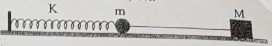 Một con lắc lò xo gồm lò xo có độ cứng k = 25N/m và vật m có khối lượng 300g nằm ngang trong đó ma sát giữa vật m và sàn có thể bỏ qua. Vật M khối lượng 200g được nối với vật m bằng một sợi dây nhẹ, dài và không dãn như hình vẽ. Hệ số ma sát trượt giữa M và sàn là 0,25. Lúc đầu vật m được giữ ở vị trí lò xo dãn 10cm (trong giới hạn đàn hồi), sợi dây căng. Thả nhẹ vật m để hệ chuyển động. Lấy g = 10m/s2. Tính từ thời điểm lò xo bị nén mạnh nhất lần đầu tiên, tốc độ cực đại của vật m là