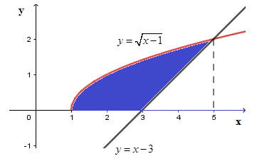 + Vẽ các đồ thị hàm số \(y = \sqrt {x - 1} ;y = x - 3\) trên cùng hệ tọa độ