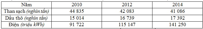Cho bảng số liệu: SẢN LƯỢNG MỘT SỐ SẢN PHẨM CÔNG NGHIỆP CỦA NƯỚC TA GIAI ĐOẠN 2010 -
