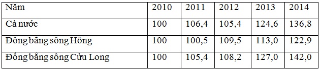 Cho bảng số liệu: TỐC ĐỘ TĂNG TRƯỜNG SẢN LƯỢNG TÔM NUÔI PHÂN THEO VÙNG, GIAI ĐOẠN 2010 –