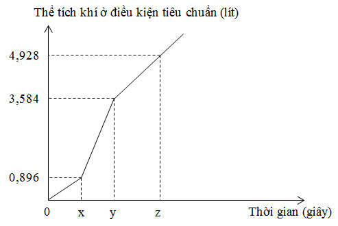 Điện phân dung dịch X chứa KCl và CuSO4 bằng dòng điện một chiều có cường độ 5A (điện cực trơ, màng ngăn xốp, hiệu suất điện phân 100%, các khí sinh ra không tan trong dung dịch). Toàn bộ khí sinh ra trong quá trình điện phân (ở cả hai điện cực) theo thời gian được biểu diễn bằng đồ thị bên.