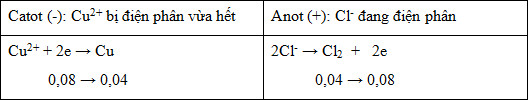 Ta thấy đoạn đồ thị thứ 2 dốc hơn đoạn 1 nên suy ra Cu2+ điện phân hết trước Cl- (đoạn 1 khí là Cl2; đoạn 2 khí là Cl2 và H2; đoạn 3 khí là H2 và O2)