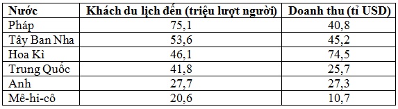 CÁC NƯỚC DẪN ĐẦU VỀ DU LỊCH TRÊN THẾ GIỚI, NĂM 2004
