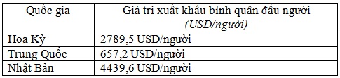 Giá trị xuất khẩu bình quân theo đầu người cao nhất, nhì là quốc gia: