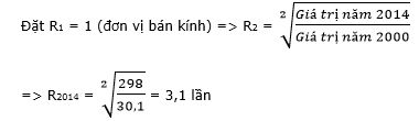 Nếu vẽ biểu đồ tròn thể hiện quy mô và cơ cấu giá trị kim ngạch xuất nhập khẩu của nước ta trong hai năm 2000 và 2014, thì tương quan bán kính hai đường tròn năm 2000 và 2014 là: