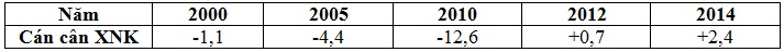 Sau khi đã xử lý số liệu, các năm nước ta trong tình trạng nhập siêu là: