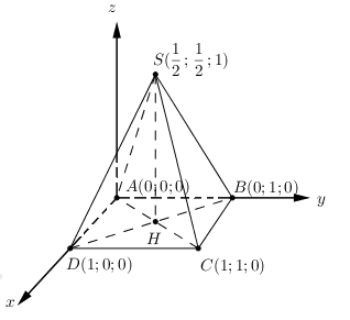 Chóp đều \(S.ABCD\) có chiều cao bằng cạnh đáy và cùng bằng \(a\). \(M,N\) là trung điểm của