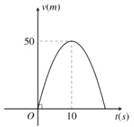Một vật chuyển động vận tốc tăng liên tục được biểu diễn bằng đồ thị là đường cong parabol có hình bên. Biết rằng sau \(10\,{\rm{s}}\) thì vật đó đạt đến vận tốc cao nhất \(50\,{\rm{m/s}}\) và bắt đầu giảm tốc. Hỏi từ lúc bắt đầu đến lúc đạt vận tốc cao nhất thì vật đó đã đi được quãng đường bao nhiêu mét?