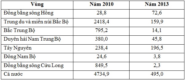 Cho bảng số liệu: Diện tích rừng bị cháy phân theo vùng
