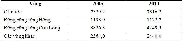 Cho bảng số liệu: Diện tích gieo trồng lúa cả năm nước ta phân theo vùng