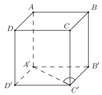 Cho hình lập phương \(ABCD.A'B'C'D'\), góc giữa đường thẳng \(A'C'\) và mặt phẳng \(\left( {BCC'B'}
