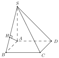 Cho hình chóp \(S.ABCD\) có \(ABCD\) là hình vuông cạnh bằng \(a,\,\,SA\) vuông góc với mặt phẳng