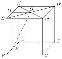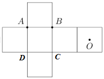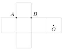 Một hình lập phương được tạo thành khi xếp miếng bìa carton như hình vẽ bên. Tính khoảng cách từ điểm \(O\) đến đường thẳng \(AB\) sau khi xếp, biết rằng độ dài đoạn thẳng \(AB\) bằng \(2a\).