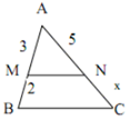 Trong hình vẽ sau đây (\(MN//BC\)) thì số đo \(x\) bằng:
