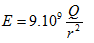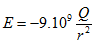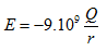 Công thức xác định cường độ điện trường gây ra bởi điện tích Q < 0, tại một điểm trong chân không, cách điện tích Q một khoảng r là: