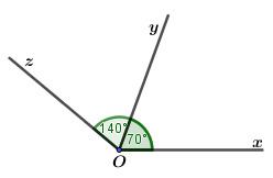 1) Chứng minh tia Oy nằm giữa hai tia Ox và Oz, ta chỉ ra \(\angle xOy\,\,\, < \,\,\angle xOz\,\,\,\left( {{{70}^0} < {{140}^0}} \right)\)